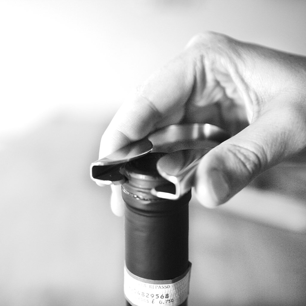 Folieskæreren fjerner toppen af folien med en kvart omdrejning – hurtigt og sikkert.